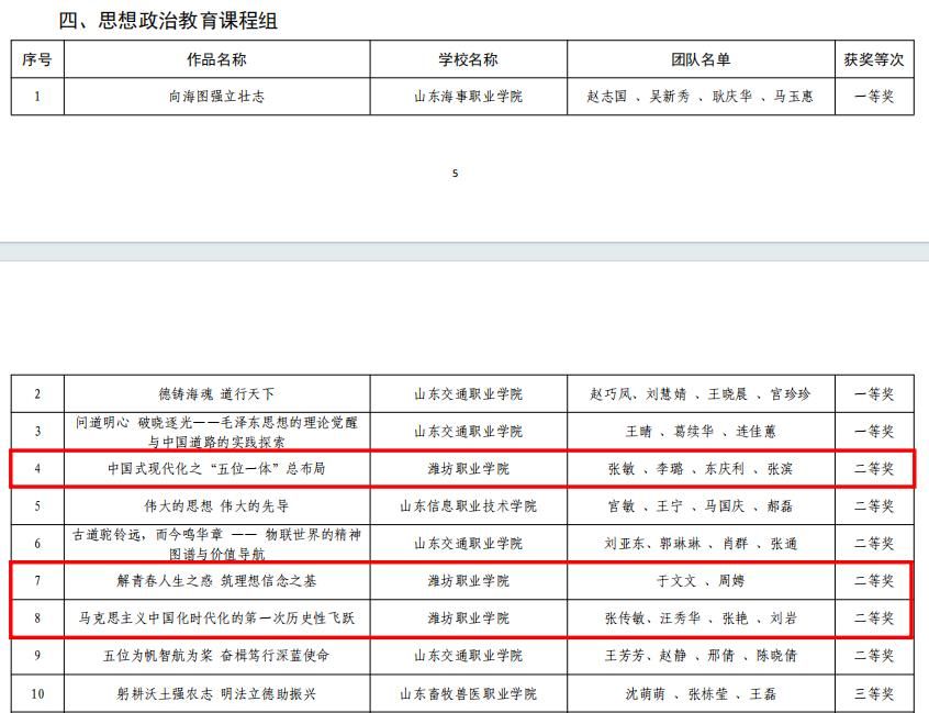 在2025年潍坊市职业院校技能大赛教学能力比赛(高职组)中,太阳成集团122ccvip3支教师团队获思想政治教育课程组3项二等奖。