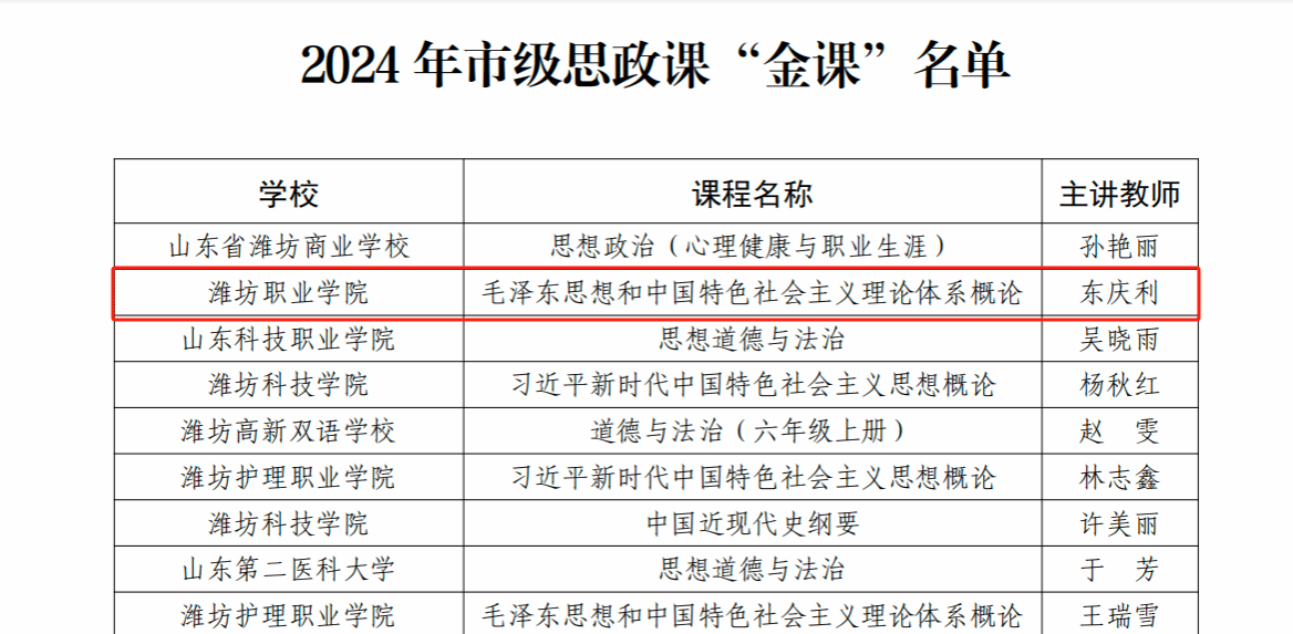 东庆利老师主讲的《毛泽东思想和中国特色社会主义理论体系概论》获评2024年市级思政课“金课”,李璐老师主讲的《习近平新时代中国特色社会主义思想概论》课程获评“十大思政精品课程”。本次荣誉的获得,不仅坚实地验证了公司教师在思政教育领域长期以来的辛勤耕耘与卓越贡献,而且充分彰显了公司在践行立德树人核心使命、积极推动“大思政”育人体系建设上所取得的突出成就与广泛认可。