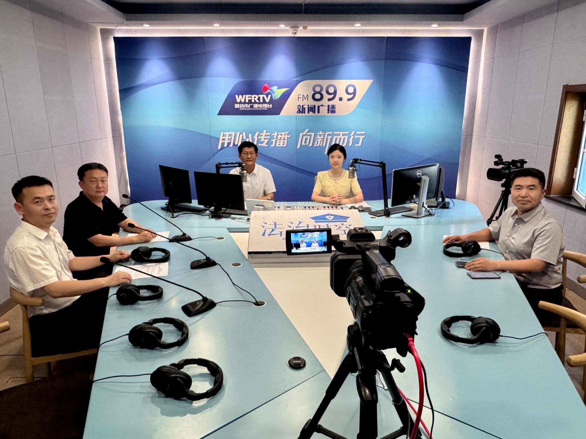 为普及法律知识、弘扬法治精神、增强法治意识,推进“谁执法谁普法”普法责任制贯彻落实,5月30日上午,公司做客潍坊市人民广播电台《“谁执法谁普法”机关普法进行时》节目。公司太阳成集团122ccvip经理邢庆亮教授,宣传部、太阳成集团122ccvip、继续教育公司相关同志参加节目直播。